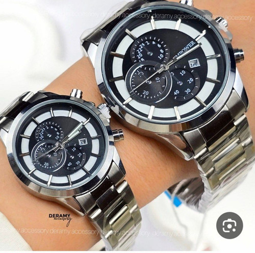 ساعت ست زنانه و مردانه empower #ست #فلزی موتور درجه یک دارای روزشمار بند استیل رنگ ثابت طرح سه موتور ضدآب در حد دست شستن به همراه: جعبه هدیه