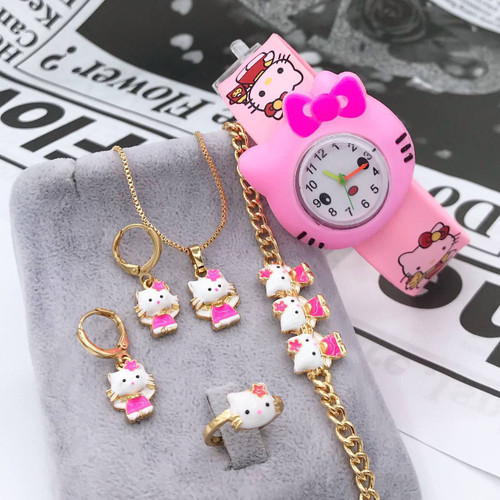 #ست کامل بچگانه طرح طلا با ساعت 🔻رنگ ثابت و ضد حساسیت 🔻بسیار زیبا