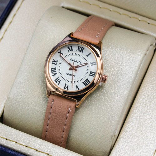 ساعت مچی دخترانه OULIJIA ✅بند چرمی، قفل کمربندی، رنگبندی ✅جعبه و باطری رایگانه