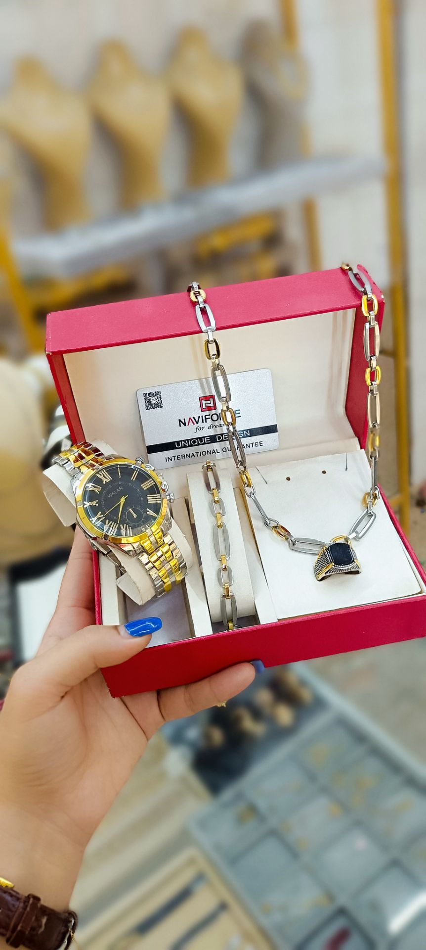 ست مردانه ساعت همراه دستبند وانگشتر وگردنبند برند ناوی فورس Naviforce