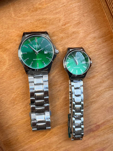 ست ساعت زنانه و مردانه کاسیو کلاسیک سایز بزرگتر سری های قبلی تاریخ روز شمار کیفیت فوقالعاده بالا،قیمت مناسب ضد آب در حد شستن دست