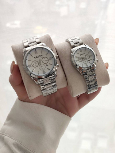 ست ساعت زنانه و مردانه برند کاسیو ☑️CASIO ☆☆☆☆ ▪︎high quality👌 >>ست کاسیو << قفل کلیپسی کیفیت سفارشی دارای روز شمار مقاوم دربرابر آب بند استیل موتور کوارتز رنگ سیلور خاص کلاسیک