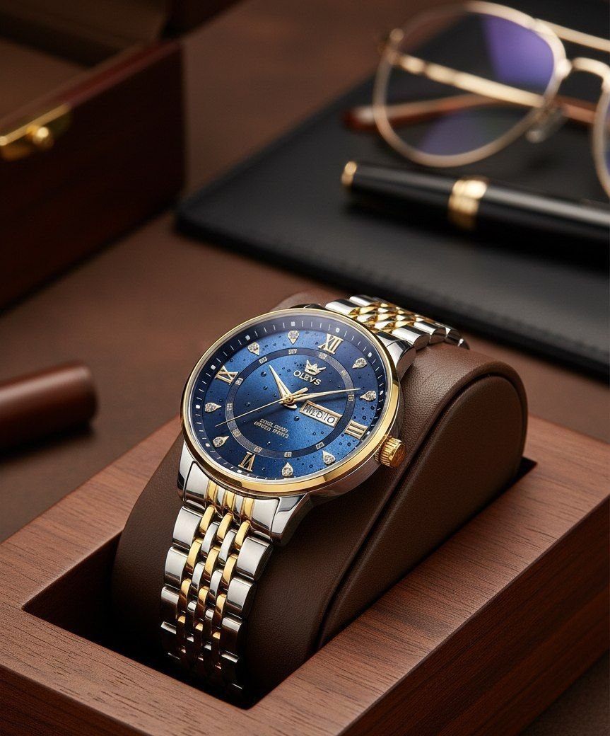 ساعت مچی مردانه ☑️olevs 🔥Sold well "اصالت در جزئیات است... ✨ 《ویژگی های محصول 》 موتور کوارتز مقاوم در برابر آب طرح الماس دارای روز شمار ایام هفته صفحه شب نما بند وستاری قفل پروانه ای استیل مخفی شیشه سافایر ضدخش طراحی لوکس و چشم نواز