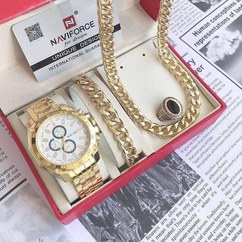 ست ساعت لوکس مردانه برند والارValarهمراه با دستبند وگردنبند و انگشتر استیل