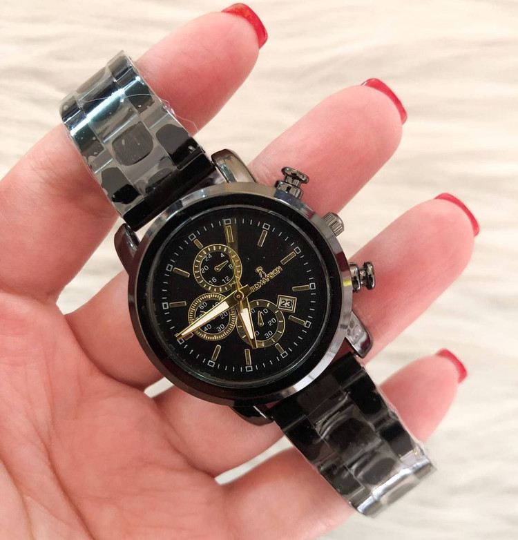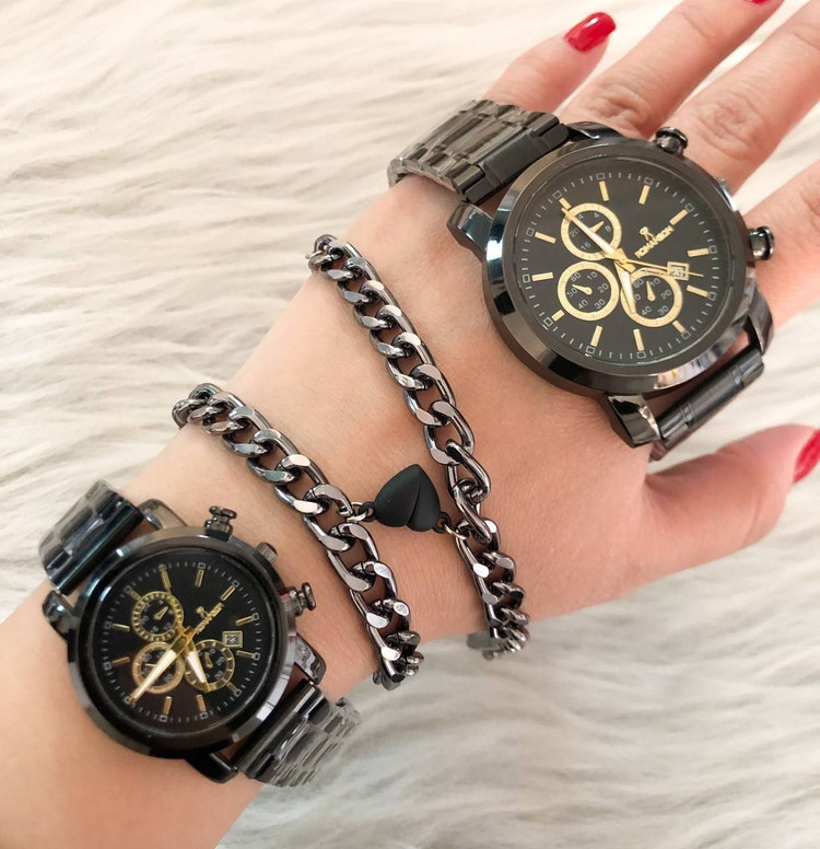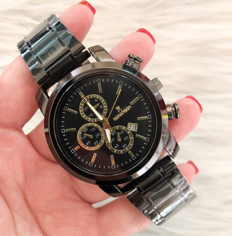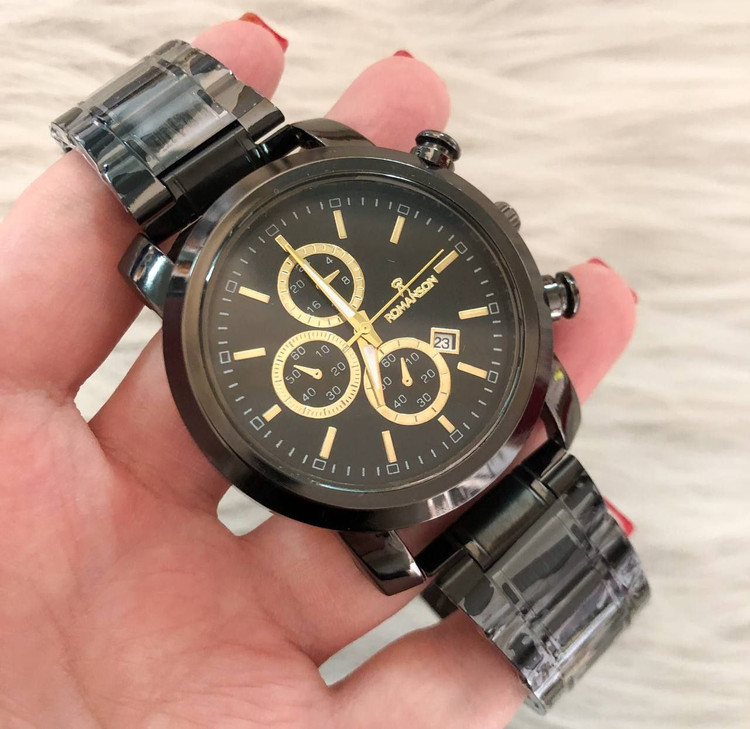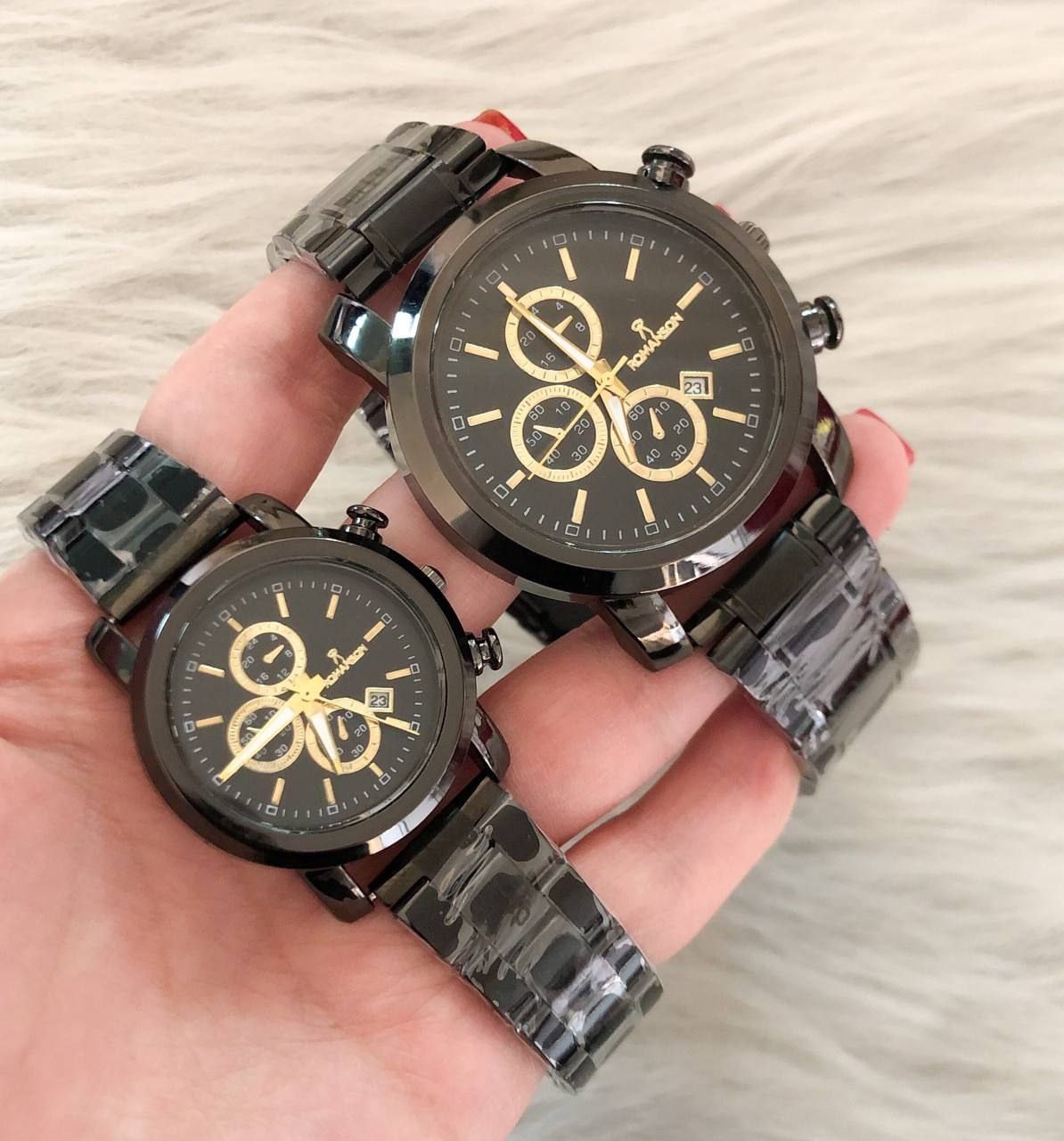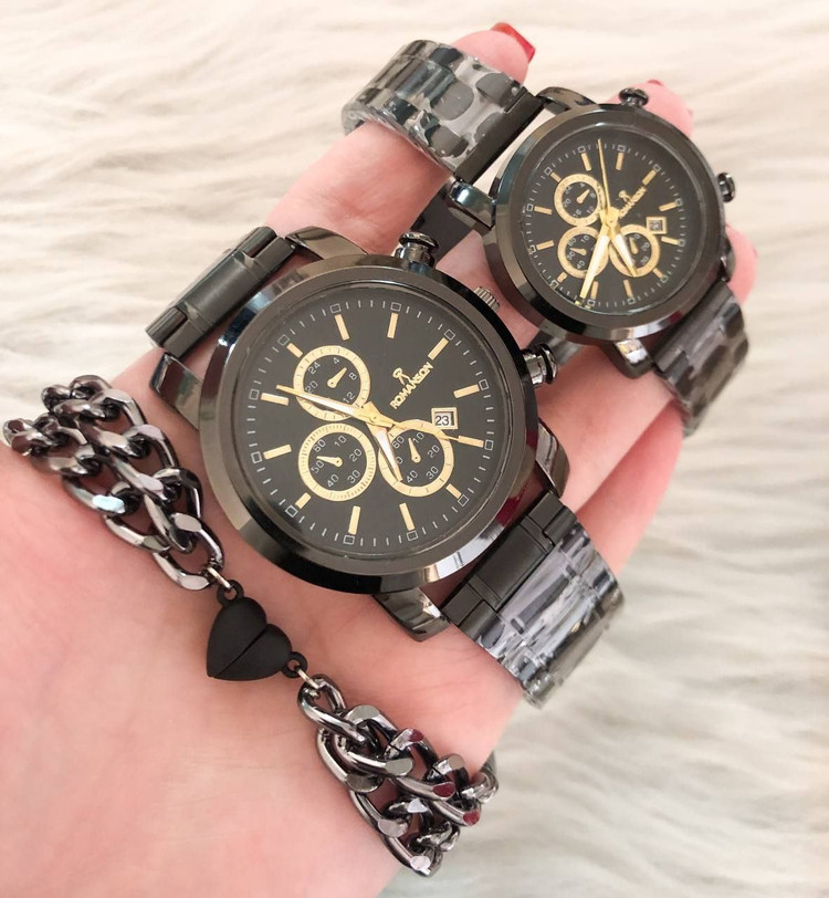 ست ساعت زنانه و مردانه مارک رومانسون بنداستیل مشکی صفحه مشکی. طرح سه موتوره