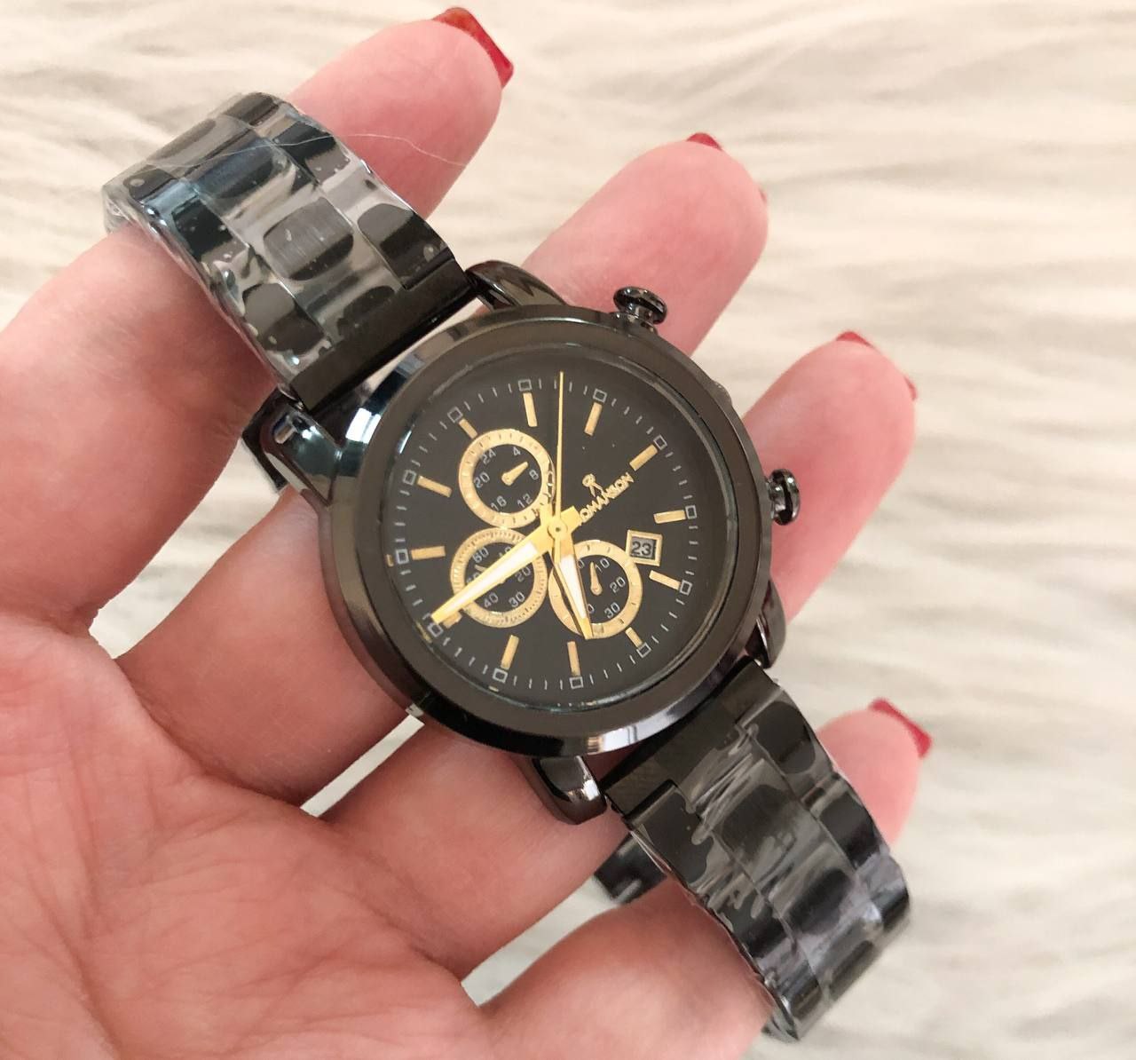 ست ساعت زنانه و مردانه مارک رومانسون بنداستیل مشکی صفحه مشکی. طرح سه موتوره