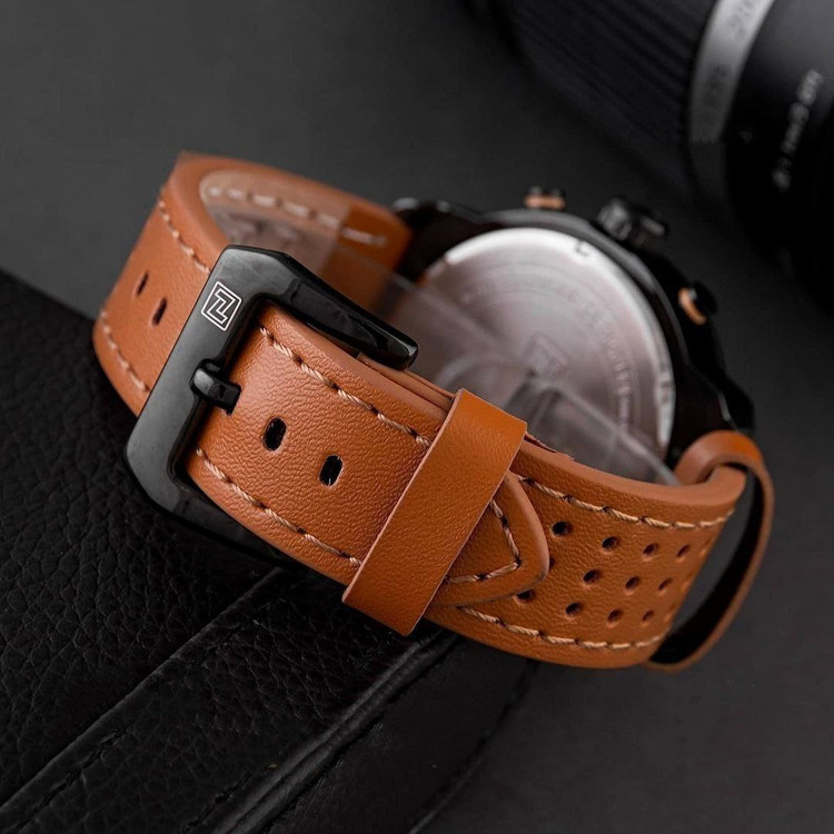 اطلاعات محصول :موتور ژاپن نمایشگر ایام ماه - هفته و ساعت Am/Pm بند چرم قاب استیل شیشه ضدخش ضدآب 3Atm ❌به همراه جعبه چوبی