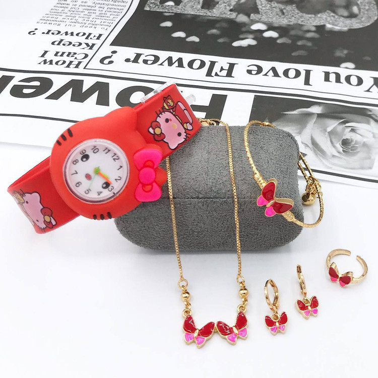 #ست کامل بچگانه طرح طلا با ساعت 🔻رنگ ثابت و ضد حساسیت 🔻بسیار زیبا