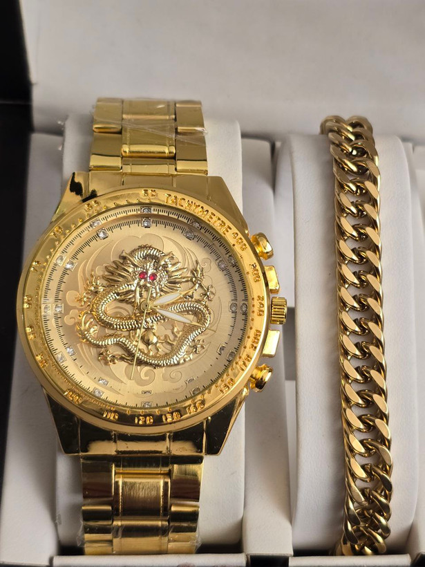 سایر مشخصات :: ست مردانه ساعت و دستبند و گردنبند استیل و حلقه( سایز ۶ تا ۱۰) بهمراه جعبه کادویی و باتری یدکی