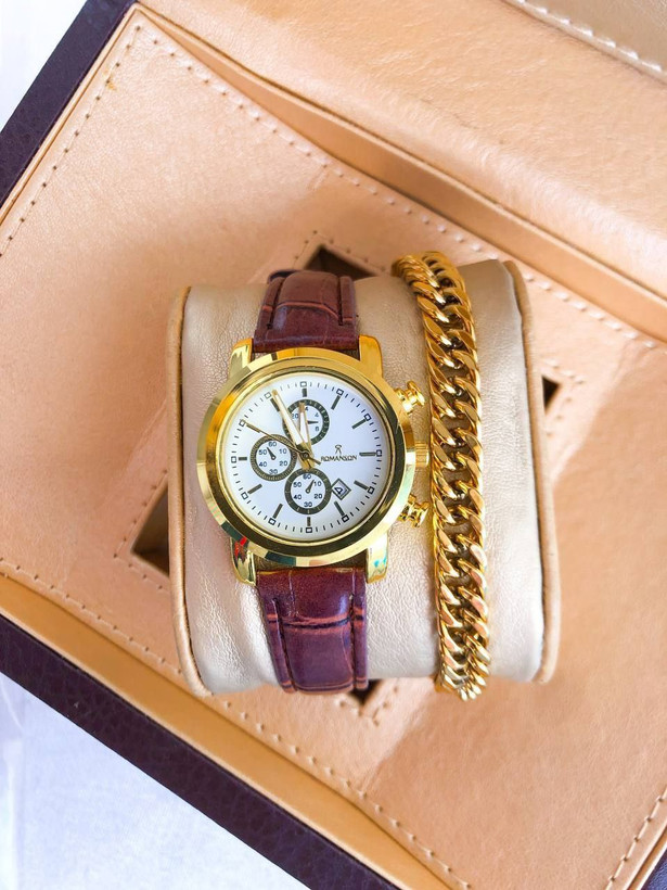 ساعت بند چرمی قهوه ای دور قاب طلایی زنانه یا مردانه همراه با دستبند کارتیر درجه یک وارداتی از دبی کیفیت تضمینی همراه با جعبه کادویی بالشتک دار گارانتی ۶ ماه موتور قطر صفحه مردانه حدودا ۳۵ میلی متر قطر صفحه زنانه حدودا ۲۸ میلی متر 👗کاری بروز و همه پسند 🔥👌 👗کاری شیک و به روز ☺️🤩 🧵جنس : بند چرم 🖌 رنگ بندی : ساعت و دستبند مردانه - ساعت و دستبند زنانه - ⚜️ سایز ها : mard - zan - 💰