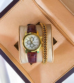 👚نام : ساعت بند چرمی قهوه ای دور قاب طلايي زنانه یا مردانه همراه با دستبند کارتیر درجه یک