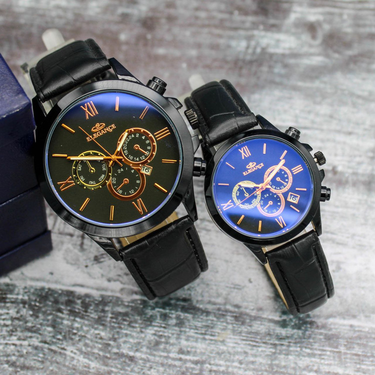 ست ساعت مچی ELEGANCE ✅طرح کرنو، تقویم دار، بند چرمی، شبنما ✅قفل کمربندی، ضدآب در حد دست شستن ✅جعبه