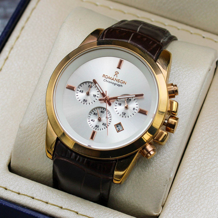 ساعت مچی مردانه ROMANSON ✅هر سه موتور فعال ✅کرنوگراف، تقویم دار،رنگبندی ✅نمایش ۲۴ ساعت شبانه روز ✅بند چرمی، قفل کلیپسی، رنگ ثابت ✅جعبه و باطری