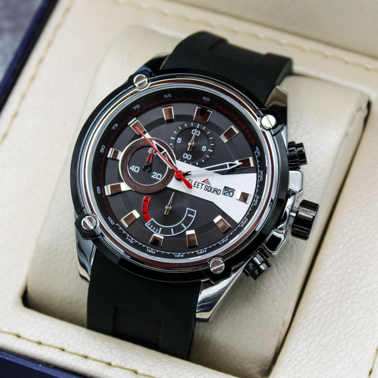 ساعت مچی مردانه FLEET SQUAD ✅موتور ژاپن، هر سه موتور فعال ✅فول تایم، تقویم و روزشمار ✅نمایش ۲۴ ساعت شبانه روز ✅بند پییو، قفل کمربندی، رنگ ثابت ✅یک سال گارانتی موتور و رنگ ✅جعبه و پاکت شرکتی