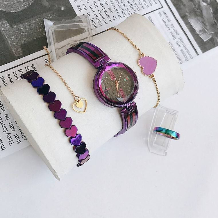 پک جذاب دخترانه با اشانتیون😍🌸🌸 ♦️ ساعت بسیار با کیفیت و های کپی زنانه استیل مارک گوچی ♦️ ۲ عدد دستبند شیک قلب استیل رنگ ثابت ♦️انگشتر استیل رنگ ثابت ♦️با جعبه شیک ساعت ♦️اشانتیون: یک عدد آویز ساعت