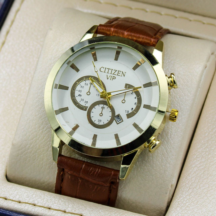 ⌚ساعت مچی مردانه CITIZEN VIP ✅طرح کرنو، تقویم دار ✅بند چرمی، قفل کمربندی ✅جعبه کادویی