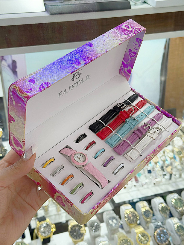 ست پرفروش دخترانه همراه با جعبه دارای یک ساعت و 10 بند