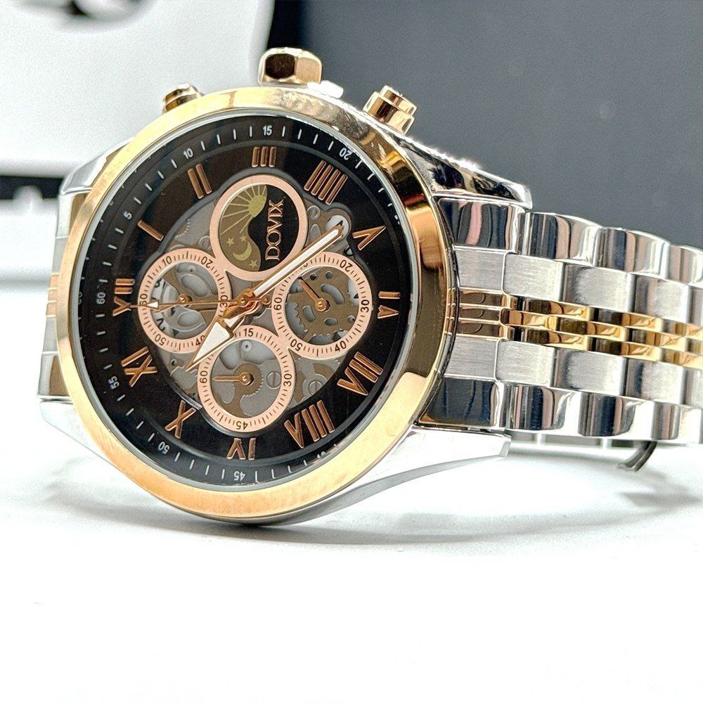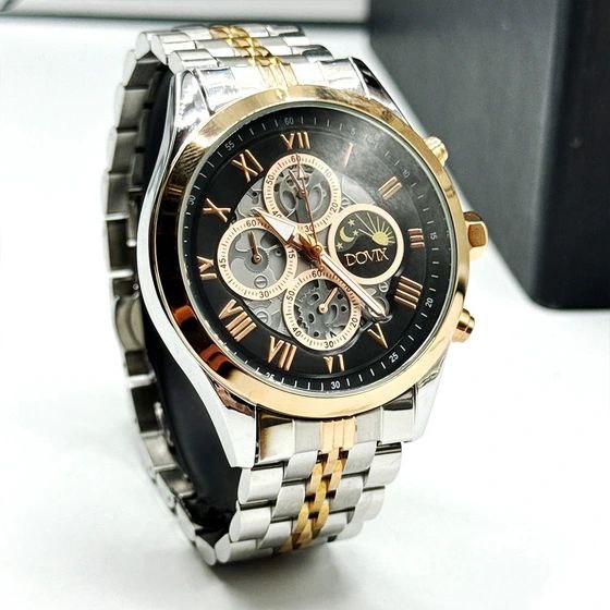 ساعت مچی مردانه DOVIX Orginal سه موتور فعال ارجینال دارای روز شمار قفل استیل پروانه ای (مخفی) بند استیل رنگ ثابت موتورکوارتز کرنو ضدآب شیشه ضدخش سافایر کرنوگراف