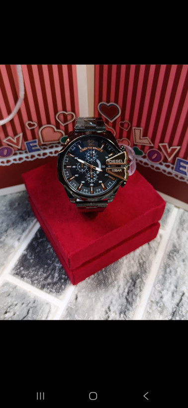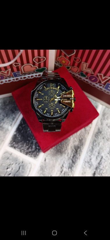 ساعت مچی مردانه ⌚️طرح دیزل شاخ دار ✅️کیفیت عالی بدنه استیل  ✅️کیفیت ابکاری عالی رنگ ثابت ✅️تقویم دار ✅️باطری مقاوم ✅️با اصلی مو نمیزنه ✅️قفل مقاوم