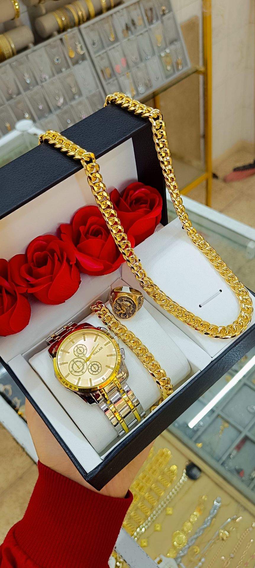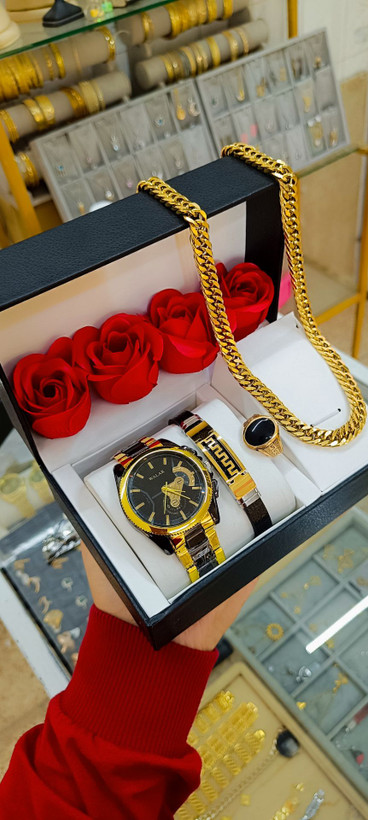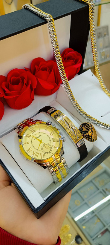 کالکشن جدید مردانه 🌹ساعت مردانه والار 🌹همراه ست گردنبند و دستبند آلمنیوم 🌹انگشتر طلا روس رنگ ثابت