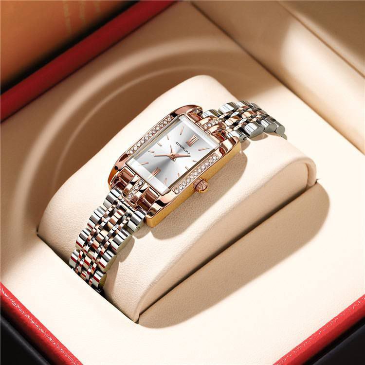 زنانه اوریجنال سرجیو🔥 برند: crrju مدل: 5026 کار شرکتی اورجینال ضد اب 3atm بند سیلور رزگلد قاب رزگلد قاب نگین دار قفحه مستطیلی موتور کوارتز شیشه صد خش قفل پروانه ای ضامن دار تمام استیل رنگ ثابت و بدون حساسیت همراه جعبه چوبی