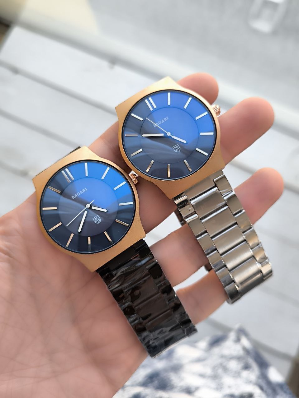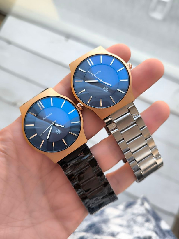 ساعت مردانه مارک BAGARI مدل 1808 رنگ ثابت شیشه رفلکس موتور با کیفیت قاب و بند استیل کیفیت بسیار خوب