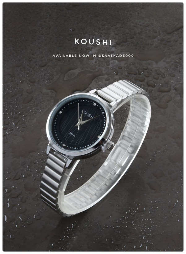 ساعت مچی زنانه Koushi For Women طراحی فانتزی مناسب استایلهای روزمره خانمها موتور شرکتی باکیفیت قاب پشت و بند استیل شیشه کریستال قفل استیل کلیپسی