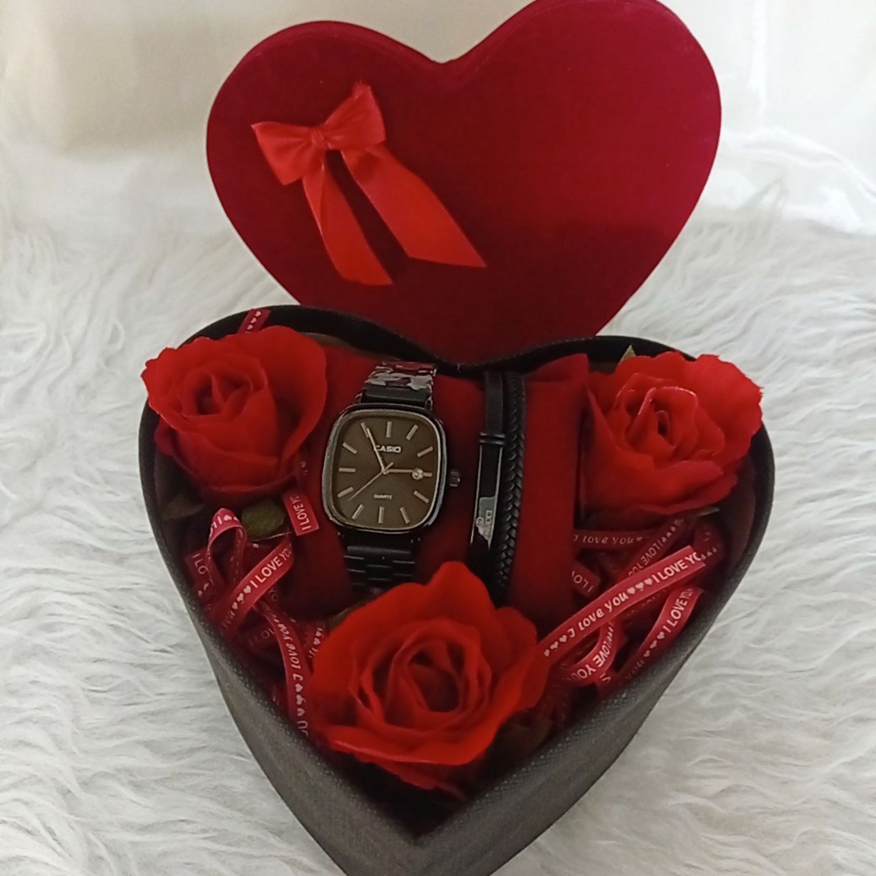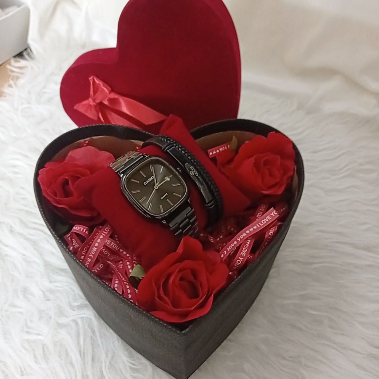 ساعت مردانه کاسیو اولدمانی صفحه مربع همراه باکس قلبی و گل کیفیت عالی مردانه و زنانه