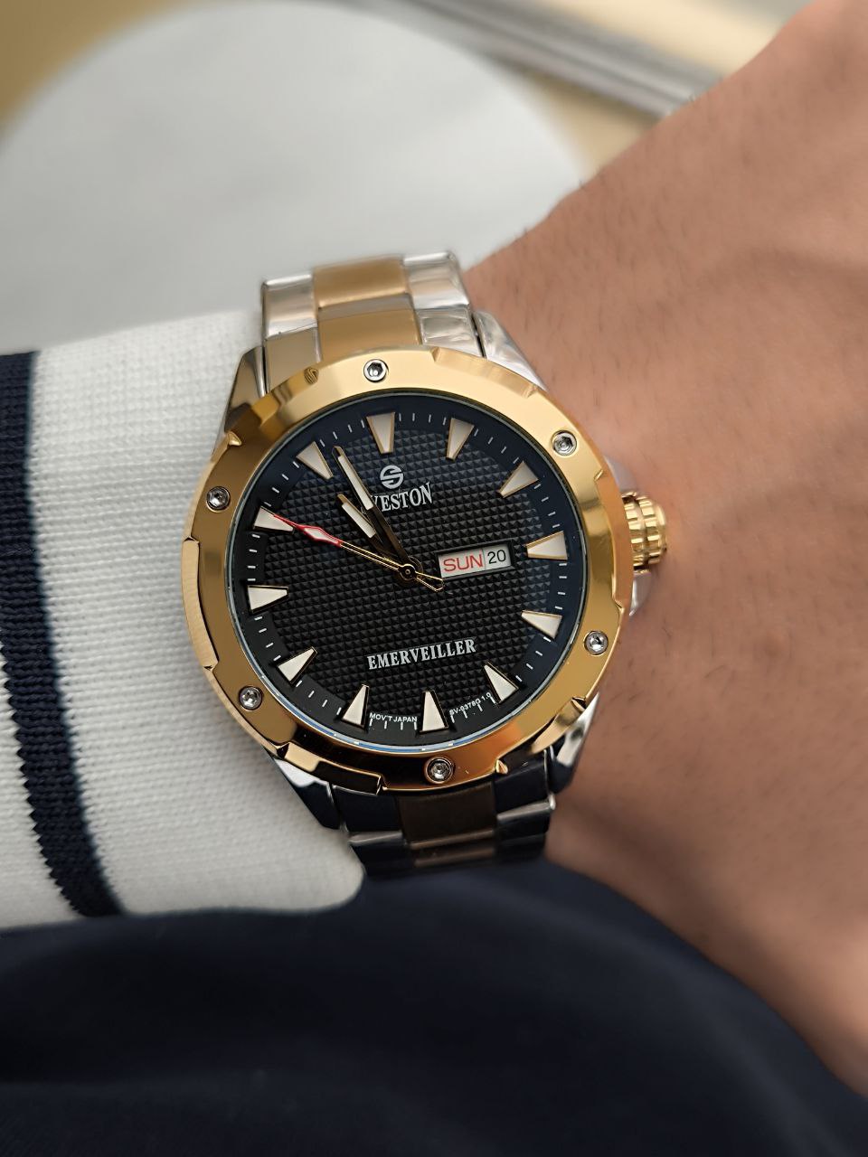 ساعت مردانه مارک SVESTON 185020007036 دو تاریخه ماهانه و روزانه ✅موتور ژاپن ✅رنگ ثابت هک مارک روی قفل