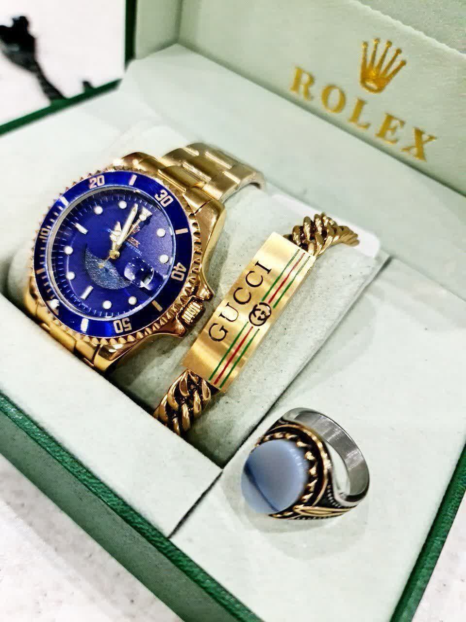 ست ساعت مچی مردانه Rolex Submariner ساعت رولکس سابمرینر برای آقایان موتور ژاپن گرید A++ دارای روزشمار قاب دوار شیشهای حک لوگو رولکس دربند ساعت بند و قفل استیل اصلی رولکس شیشه تلسکوپی کریستال ضدخش