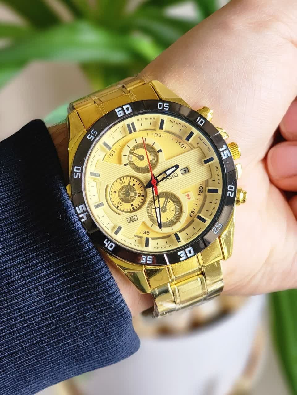 ساعت مچی مردانه casio Edifice For men طرح ۳ موتوره کرنوگراف موتور کوارتز دارای روزشمار بند استیل رنگ ثابت فوق العاده سنگین و با کیفیت ضدآب در حد شستن دست قفل کلیپسی قاب پشت حک شده