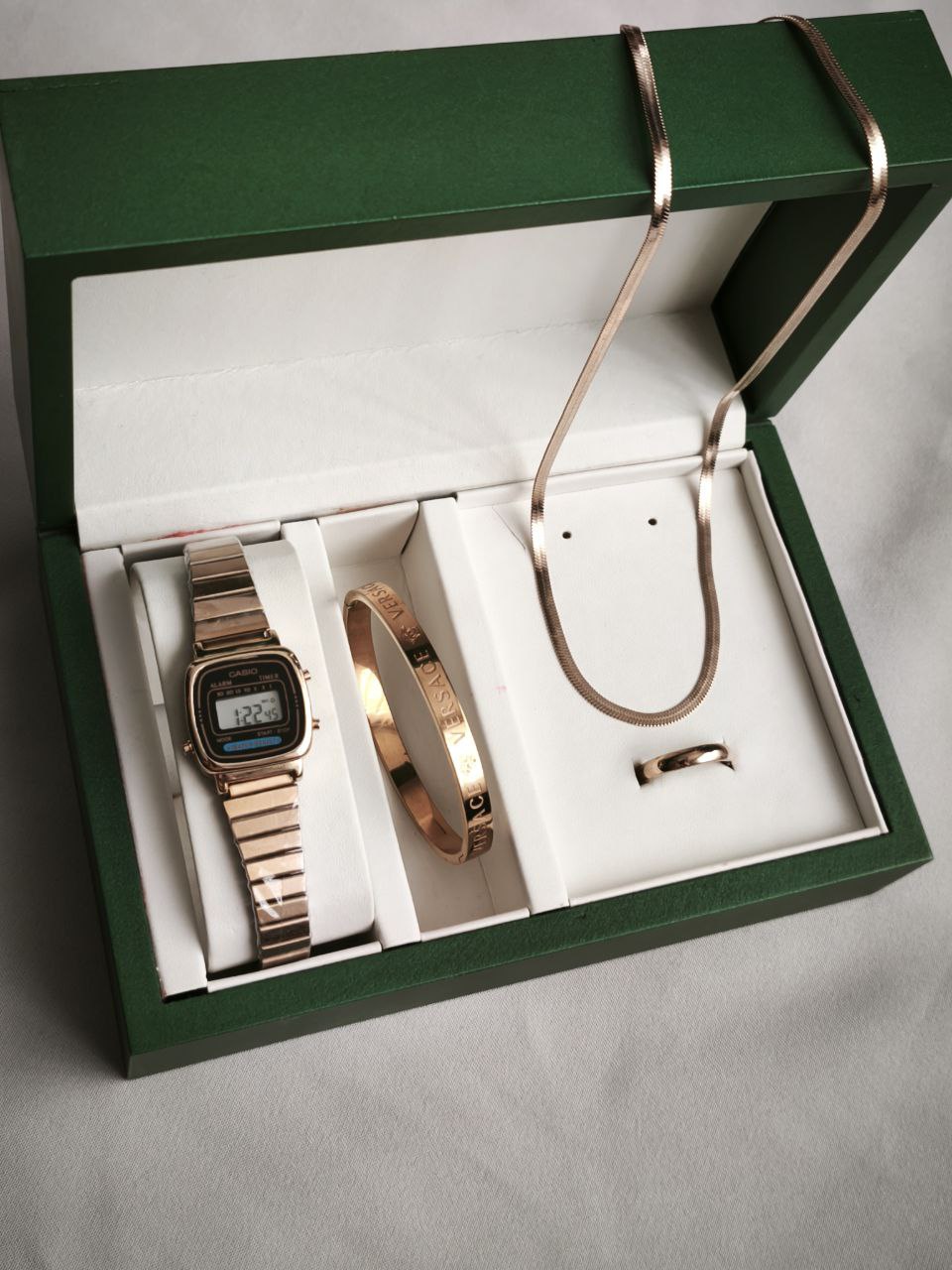 دارای: ساعت و دستبند و گردنبند و انگشتر