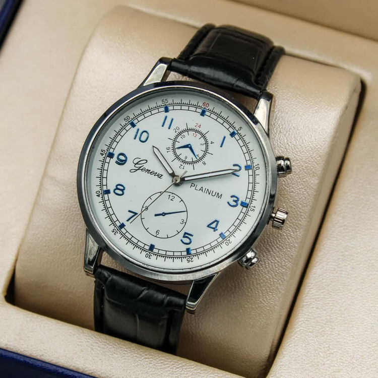 مشخصات: ⌚ساعت مچی مردانه Geneva ✅طرح کرنو،بند چرمی، قفل کمربندی ✅جعبه کادویی و باطری رایگان