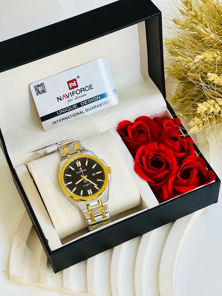 ساعت مردانه نیوی فورس مدل nf9038 اصل موتور ژاپن استیل دو تقویمه اورجینال عقربه ای آنالوگ نوع موتور کوارتز ضد اب 3atm
