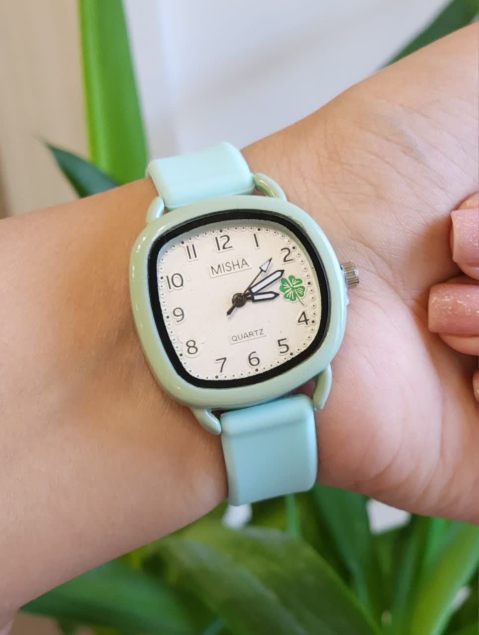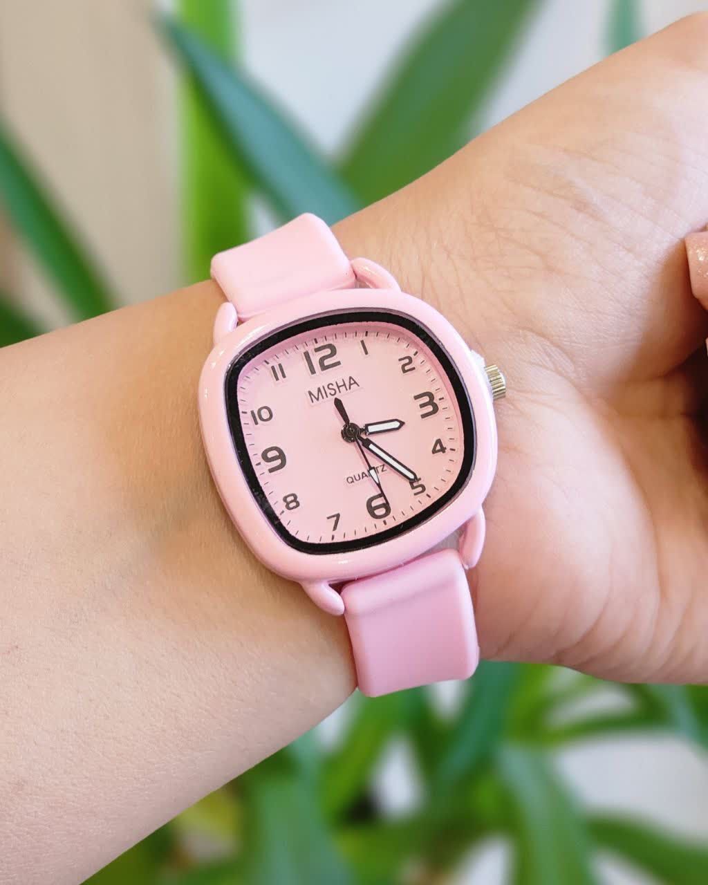 ساعت مچی زنانه و دخترانه qulijia Bolun For teen موتور شرکتی ضدآب در حد دست شستن قاب نگینی شیشه تراش بند با کیفیت سیلیکونی قفل سگکی رنگپاستیلی