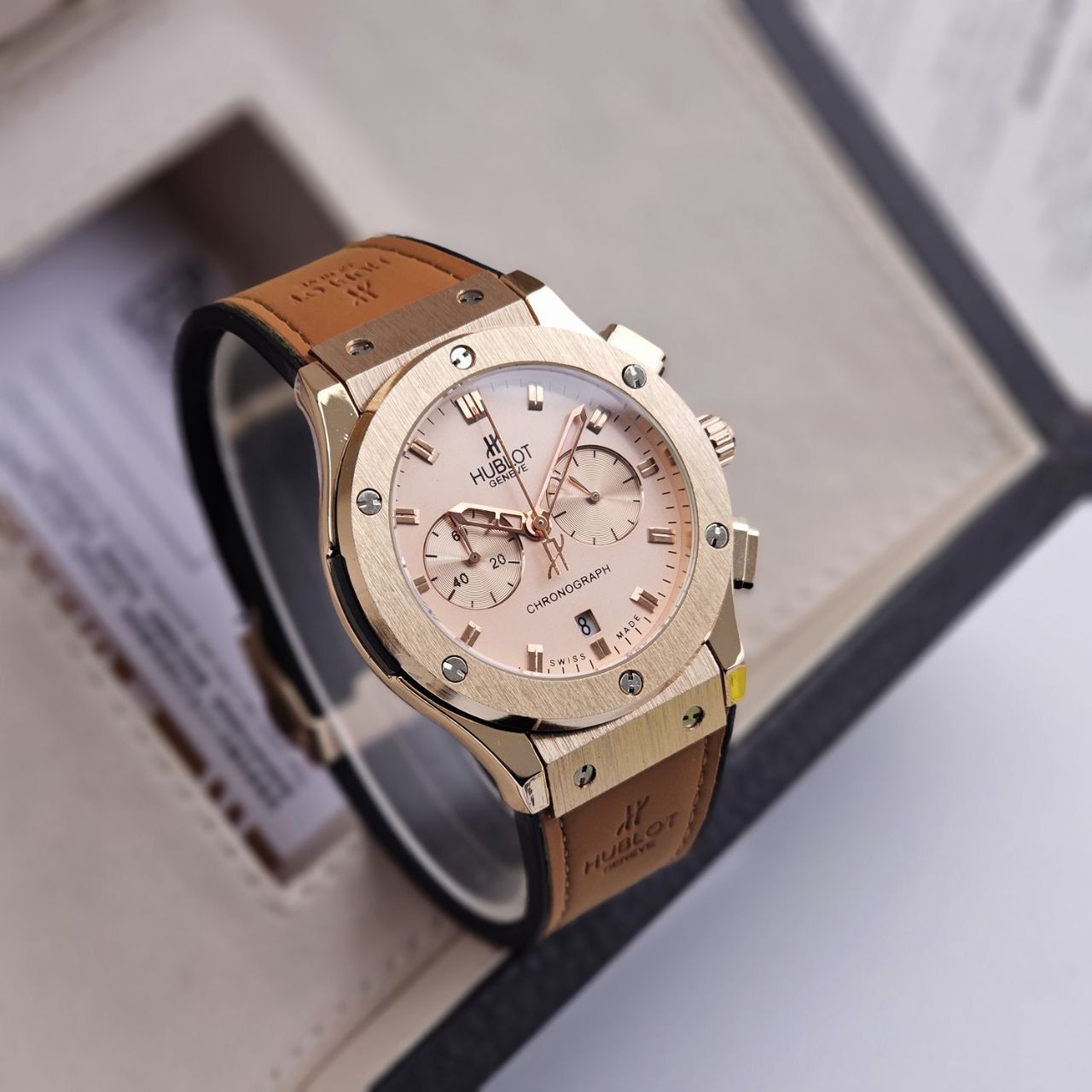 ساعت مچی مردانه برند هابلوت HUBLOT ♾ هابلو کرنوگراف مناسب آقایان قفل کلیپسی هابلو ضدآب در حد دست شستن موتور ژاپن دارای روز شمار بند رابر با روکش چرم قاب رنگ ثابت سه موتور فعال کرنوگراف