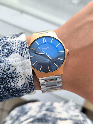 ساعت مردانه مارک BAGARI مدل 1808 رنگ ثابت شیشه رفلکس موتور با کیفیت قاب و بند استیل کیفیت بسیار خوب
