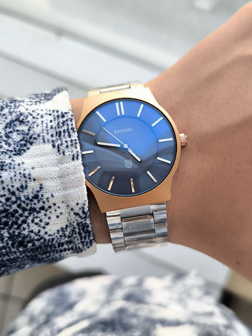 ساعت مردانه مارک BAGARI مدل 1808 رنگ ثابت شیشه رفلکس موتور با کیفیت قاب و بند استیل کیفیت بسیار خوب