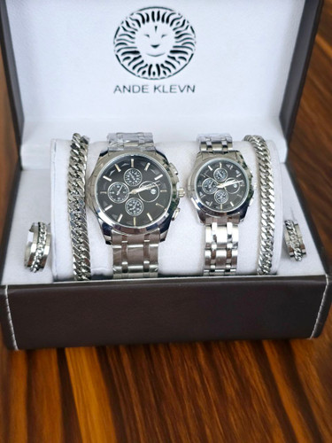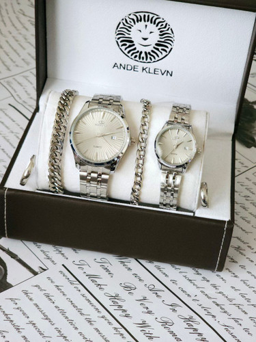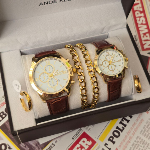 ساعت ست مردانه دارای جعبه کادویی و دستبند و حلقه