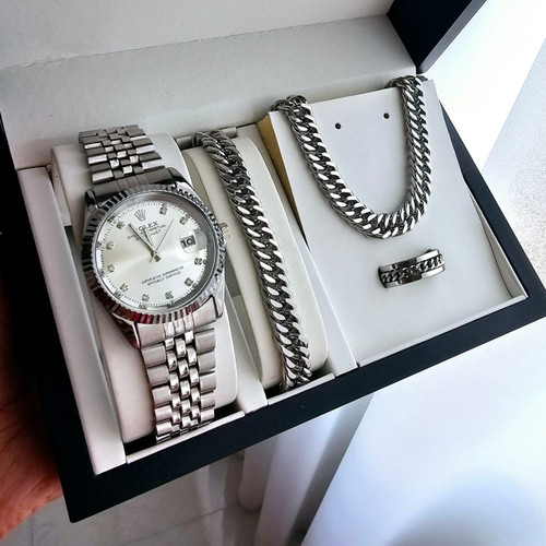 ست ساعت و دستبند وگردنبند و انگشتر مردانه برند رولکس Rolex