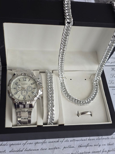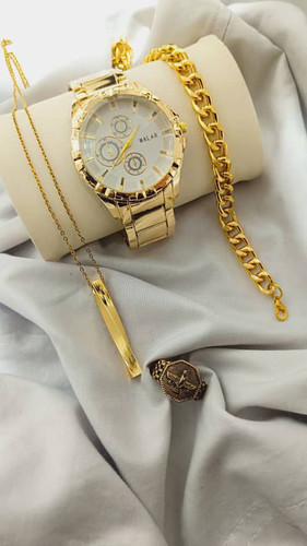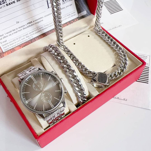 ست ساعت و دستبند وگردنبند و انگشتر مردانه رنگ ثابت کیفیت عالی