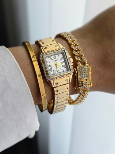 ست ساعت و دستبند وگردنبند و انگشتر کارتیر بند استیل دارای روزشمار رنگ ثابت