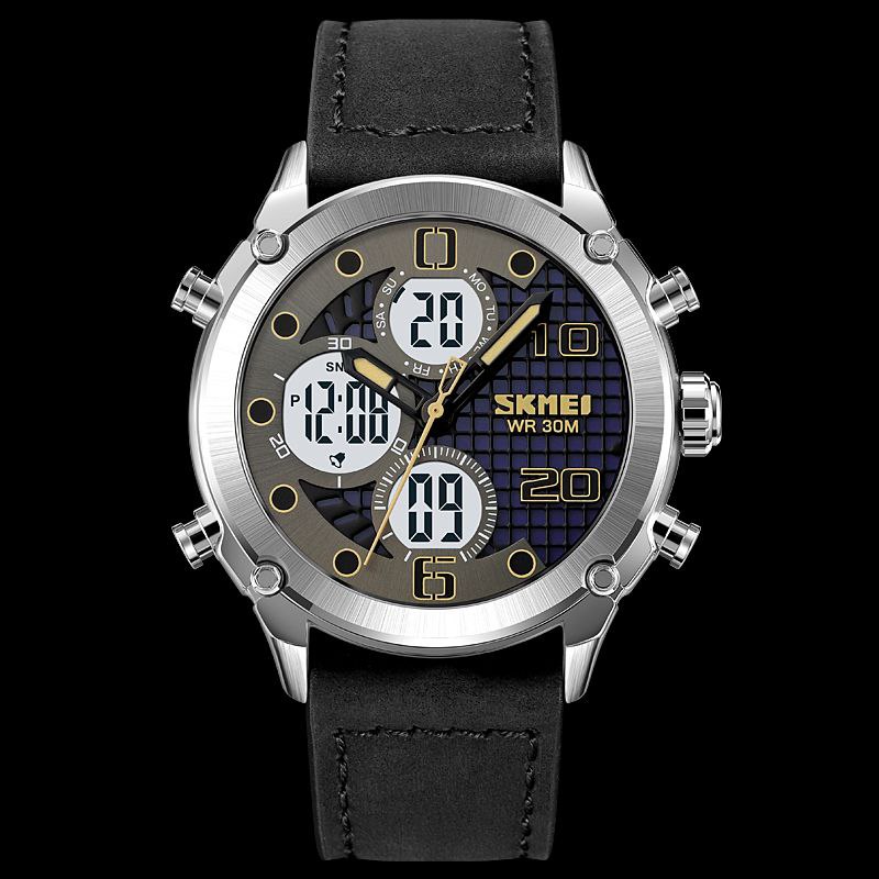 ساعت مچی دو زمانه مردانه Skmei 👌🏻کیفیت عالی، تمام استیل، ضدآب، رنگ ثابت 👌🏻همه موتورها فعال، کرنومتر، نور زمینه، آلارم رنگبندی موجود: مشکی، نقرهای، رزگلد