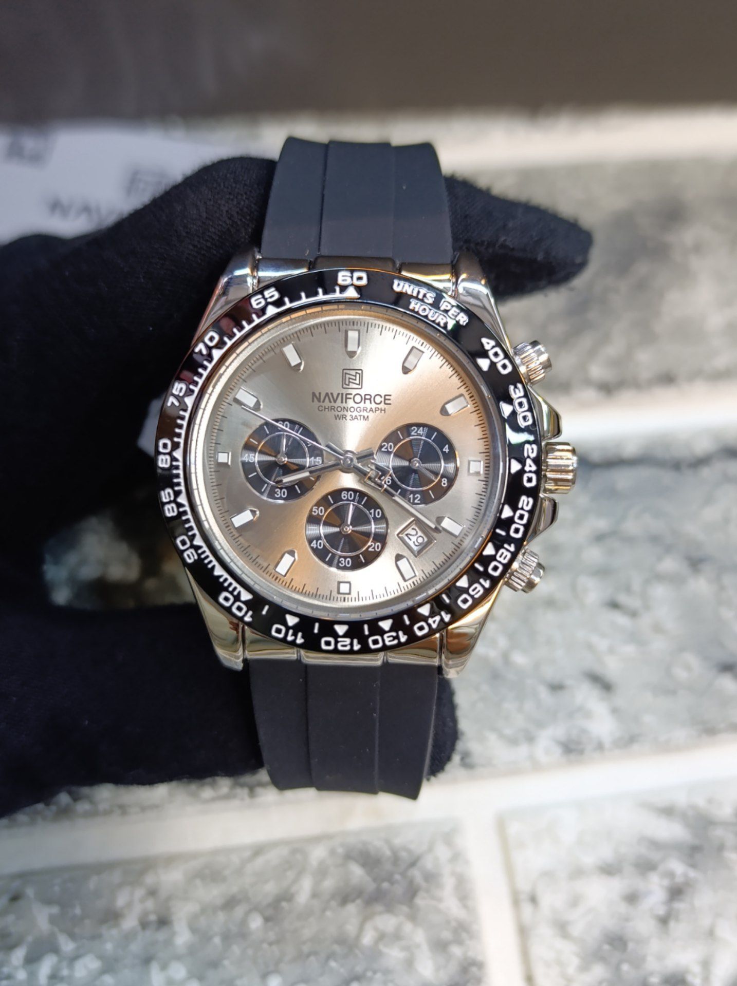 ساعت عقربه ای مردانه ناوی فورس Naviforce ✅سه موتور فعال ✅رنگ صفحه مشکی ✅جنس شیشه معدنی ✅فرم صفحه گرد ✅جنس بدنه فلز ✅رنگ بدنه طلایی نقرهای ✅مشکی ✅جنس بند سیلیکون ✅نوع قفل بند سگکی ساده ✅استایل کاربری روزمره لوکس ✅رسمی فشن ✅قطر صفحه ساعت 46 میلیمتر ✅منبع انرژی باتری ✅قابلیتهای تخصصی ساعت ✅صفحه طرحدار