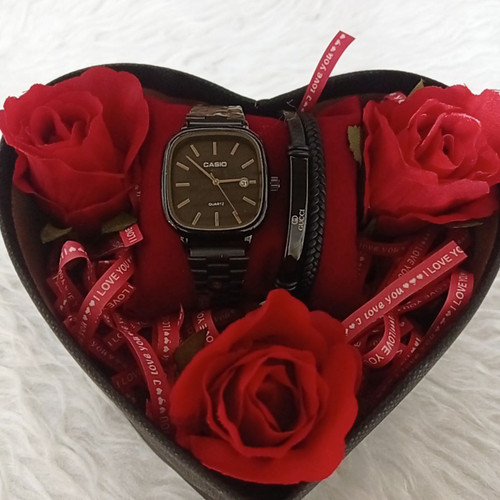 ساعت مردانه کاسیو اولدمانی صفحه مربع همراه باکس قلبی و گل کیفیت عالی مردانه و زنانه