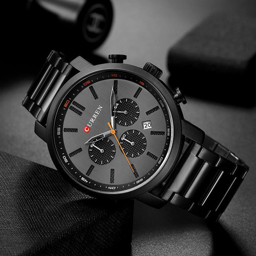 ساعت مچی مردانه کرنوگراف Curren 😎 مدل کربن بلک. بدنه و بند مشکی مات ☔️ ضد آب، رنگ ثابت، تمام استیل 👌🏻کیفیت عالی، همه موتورها فعال