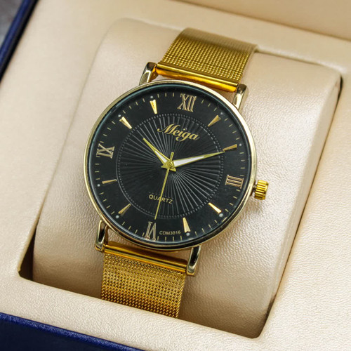 ساعت مچی Meiga ✅موتور کوارتز، بند حصیری، قفل ریلی ✅جعبه کادویی