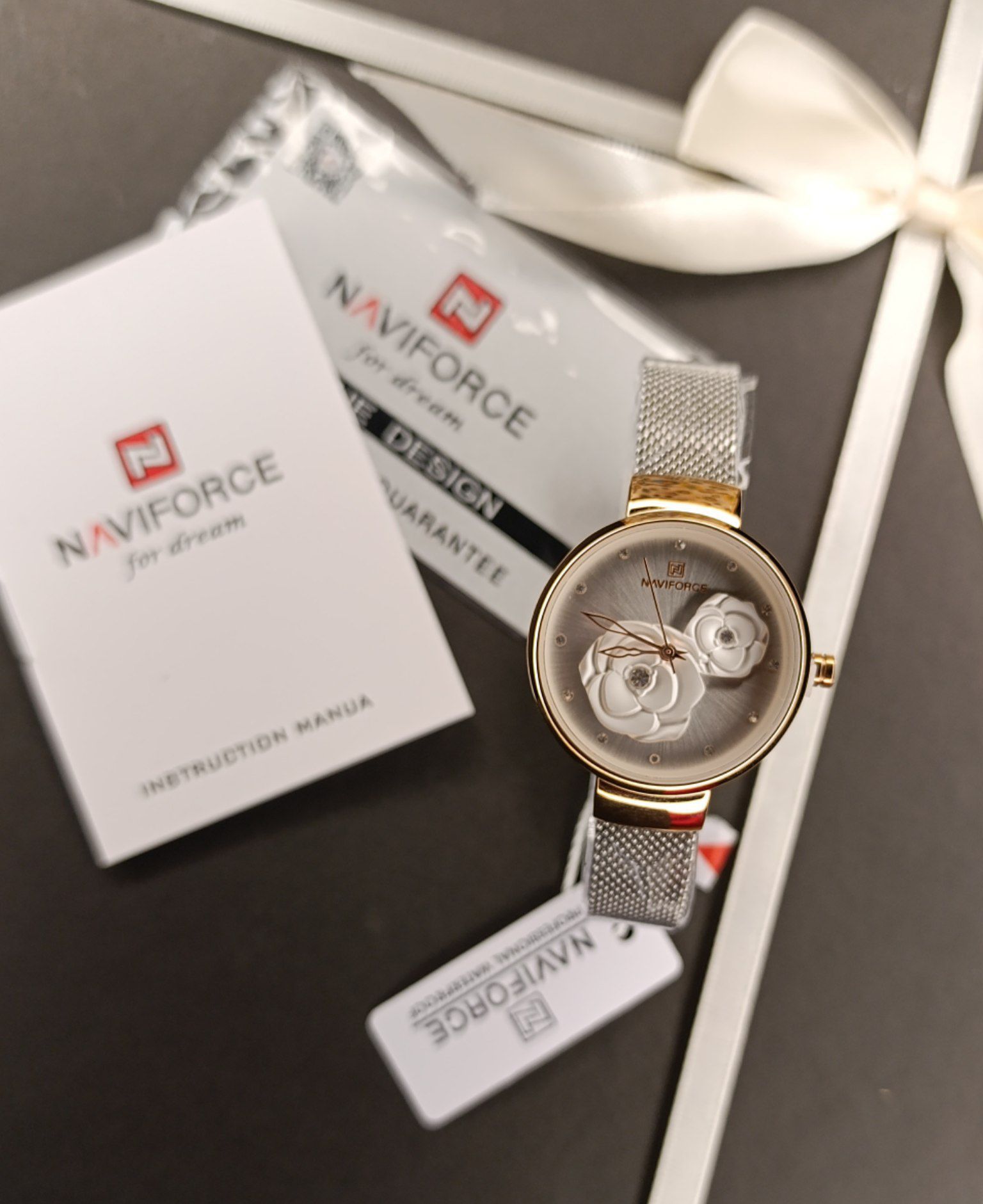 ساعت مچی زنانه ✅از برند ناوی فورس ✅طراحی زیبا صفحه ✅️ موتور ژاپن اصلی ✅️جنس بند حصیری فقط در 3رنگ نقرهای/ مشکی/ رزگلد ✅️قاب استیل ✅️رنگ ثابت ✅️موتور ژاپن ✅️قفل سگکی ساده