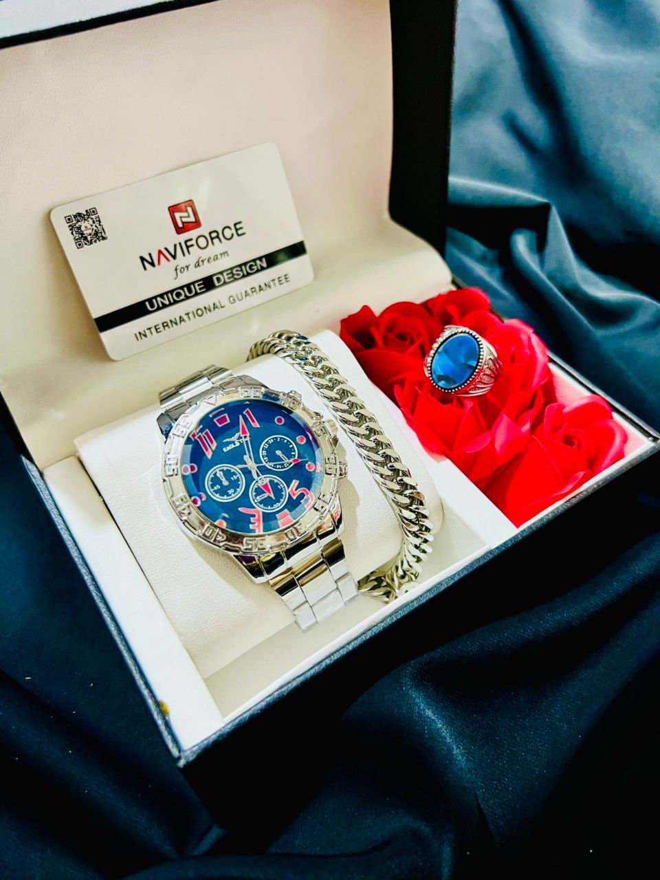 ساعت مچی مردانه مردانه مارک ناوی فورس رنگ ثابت دسته ژله ای مخصوص اونایی که حساسیت دارند ب ساعت تاریخدار سه موتور فعال همراه کارت گارانتی کیفیت عالی ضد آب