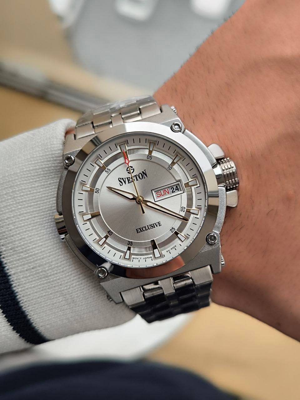 ساعت مردانه مارک SVESTON 185020006979 دو تاریخه ✅موتور ژاپن رنگ ثابت دوتقویم دار هک مارک روی قفل